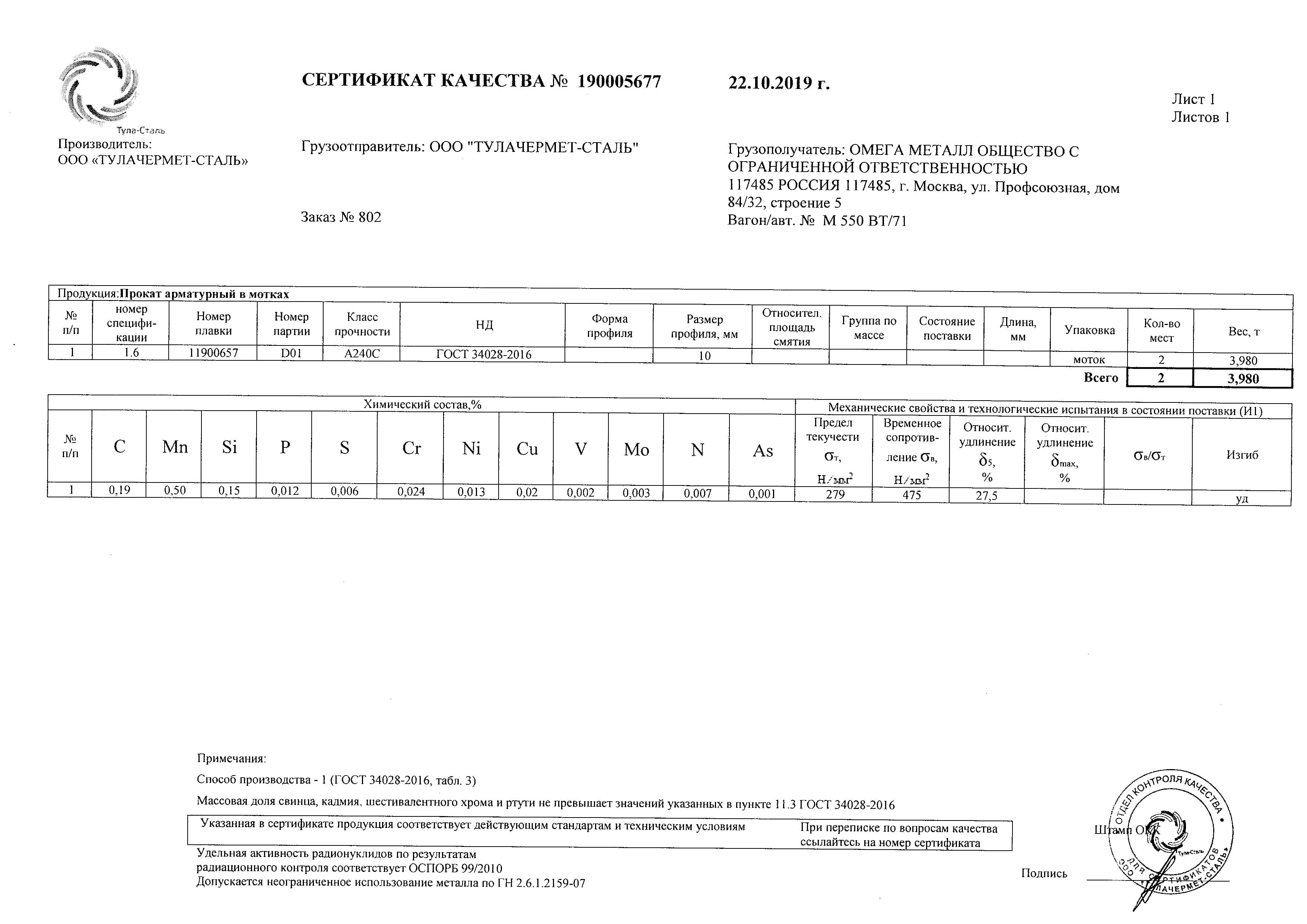 С каждой товарной позицией мы предоставляем все сертификаты и паспорта качества, а также товарно-транспортную накладную.