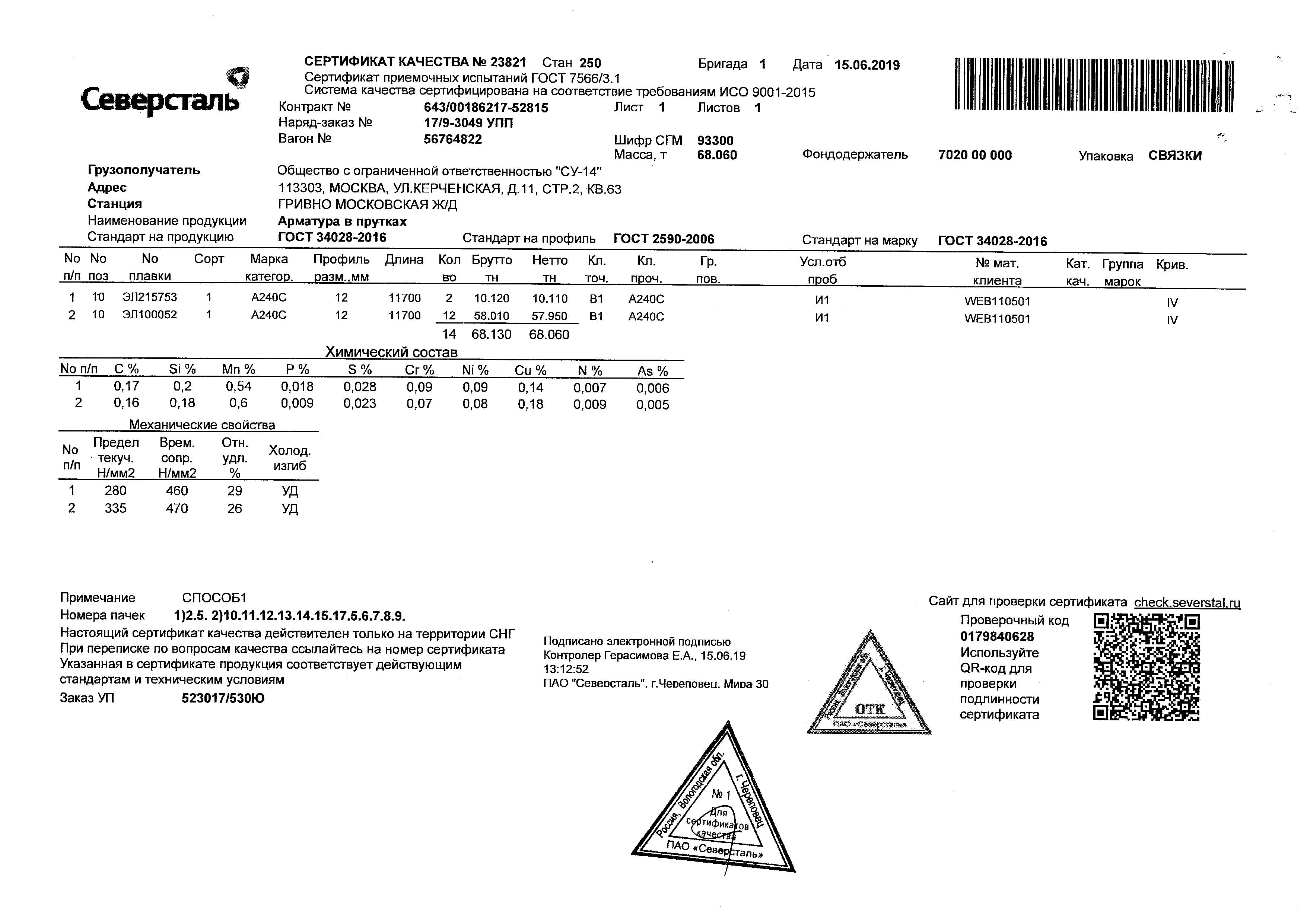 С каждой товарной позицией мы предоставляем все сертификаты и паспорта качества, а также товарно-транспортную накладную.